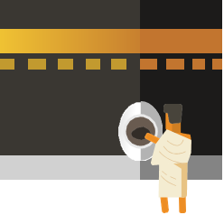 Le tawaf s'effectue en 7 tours, chacun des tours commence au niveau de la pierre noire. les hommes découvriront l'épaule droite pour effectuer le tawaf.