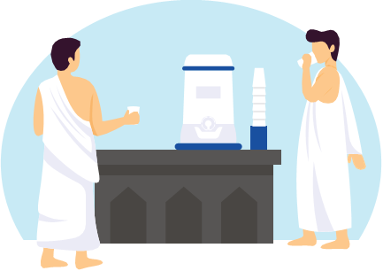 Ensuite on part boire de l’eau de Zemzem et on s'en verse un peu sur la tête, on prend enfin la direction du mont Safa.