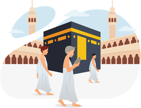 Le tawaf s'effectue en 7 tours, chacun des tours commence au niveau de la pierre noire. les hommes découvriront l'épaule droite pour effectuer le tawaf.